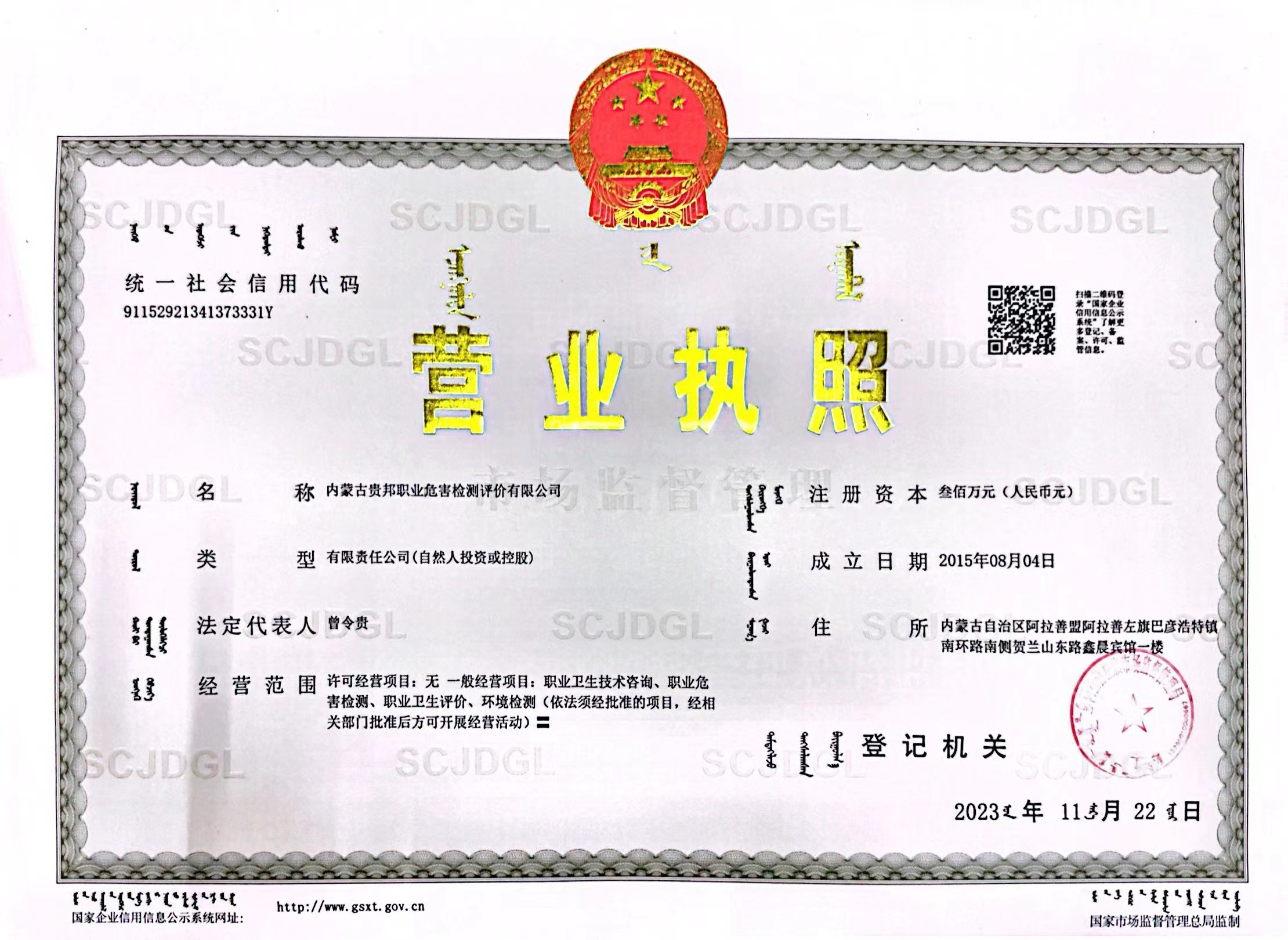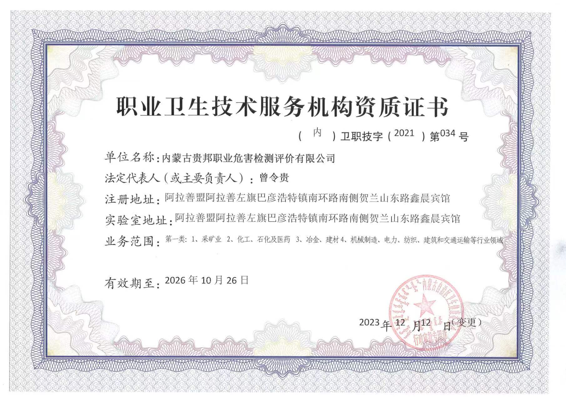 內(nèi)蒙古貴邦職業(yè)危害檢測評價有限公司(www.jsliuhe.com)版權(quán)所有 地址:阿拉善盟阿拉善左旗賀蘭山東路加氣站南側(cè)鑫晨賓館一樓 24小時熱線:18947252199 蒙ICP備:蒙ICP備21006705號-1 公安備案號:50011802010212